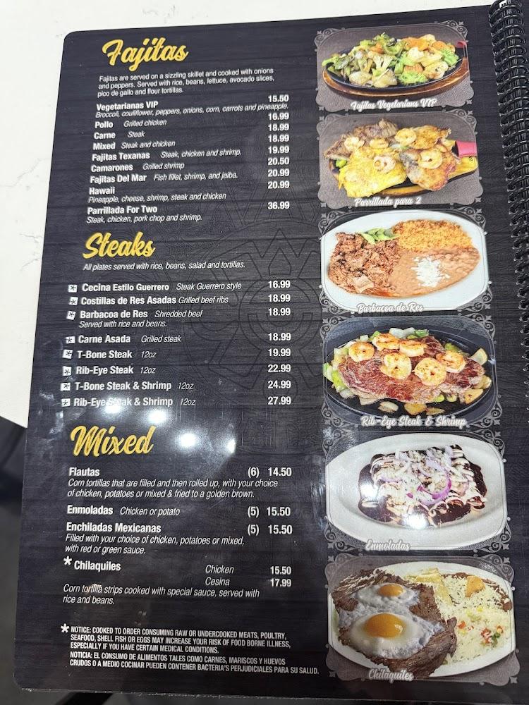 Fajitas are a standout item, sizzling with flavor and served fresh. Meat lovers can indulge in combination plates perfect for sharing. Pair dishes with appetizers like ceviche or tamales for a fulfilling experience. Desserts provide a sweet finish to any meal, enhancing the dining experience as a whole.